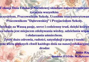 Z okazji Dnia Edukacji Narodowej składam najserdeczniejsze życzenia wszystkimNauczycielom, Pracownikom...