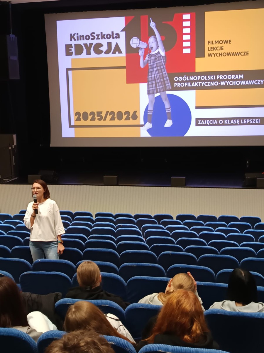 3 listopada 2025 r. odbyło się kolejne spotkanie w ramach ogólnopolskiego programu profilaktyczno-wychowawczego KinoSzkoła realizowanego dzięki Filmotece Szkolnej i Domowi Kultury w Kętach. Na spotkaniu, w którym brały udział klasy 1J i 1P1 rozmawialiśmy o widzialnych i niewidzialnych formach przemocy rówieśniczej. Po prelekcji obejrzeliśmy film “Nie martw się, nic mi nie jest. Dziękujemy Dom Kultury w Kętach za zaproszenie do projektu.