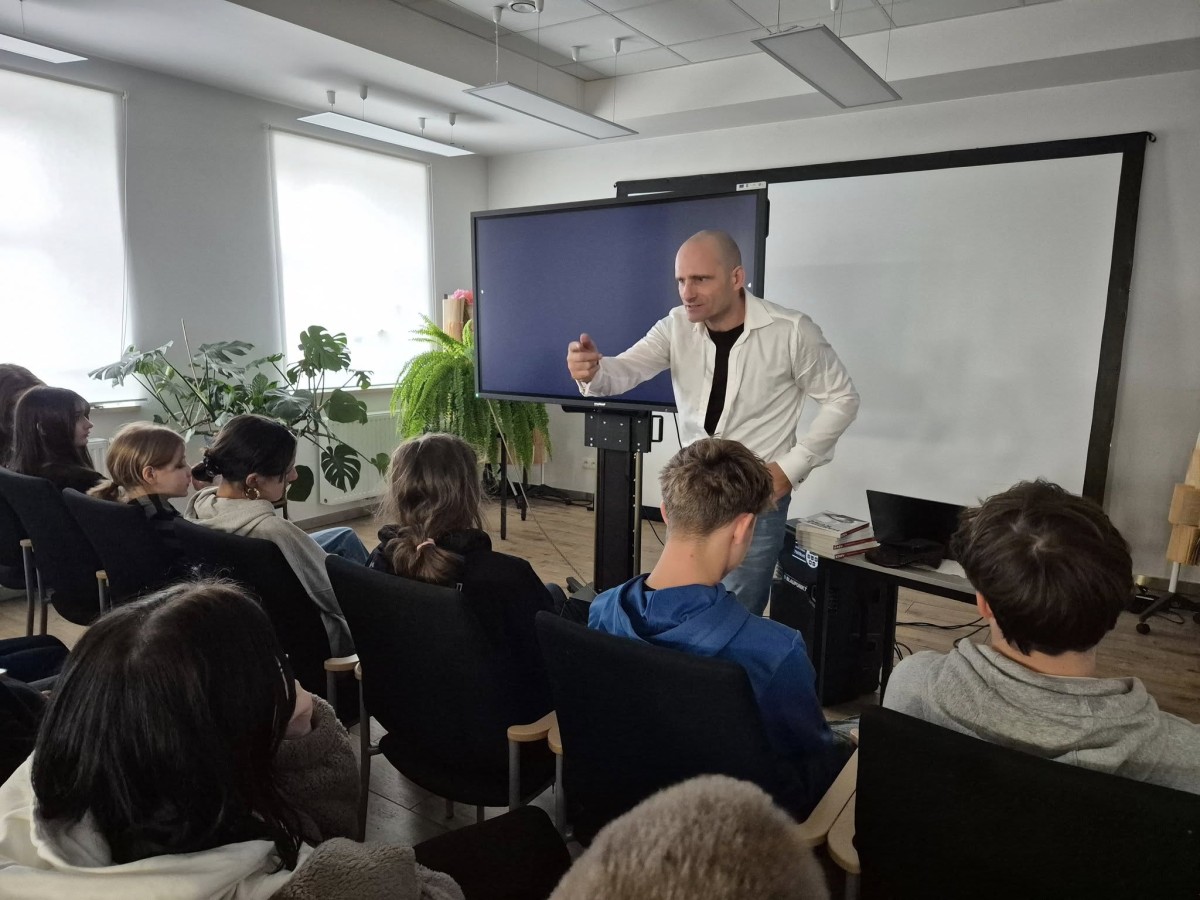 W dniu 27 listopada 2025r. uczennice i uczniowie naszej szkoły mieli przyjemność wziąć udział w spotkaniu autorskim z panem Mariuszem Kurcem, podróżnikiem, filmowcem i religioznawcą.