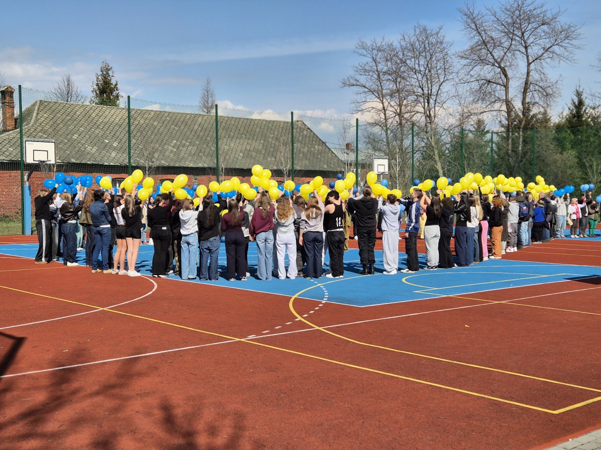 23 marca br., na naszym szkolnym boisku, zorganizowaliśmy kolejną już akcję w ramach obchodów Światowego Dnia Zespołu Downa. Wraz z zaproszonymi gośćmi z Powiatowy Środowiskowy Dom Samopomocy w Kętach z placówką w Brzeszczach uformowaliśmy żywą wstążkę w kolorach żółtego i niebieskiego – symbol wsparcia i akceptacji.