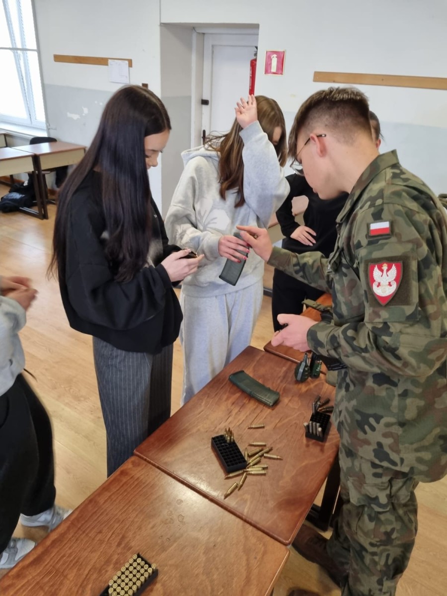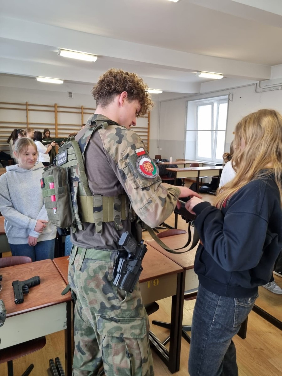 Uczniowie wzięli udział w szkoleniu obejmującym podstawy posługiwania się bronią (treningową), zasady bezpieczeństwa, postawy strzeleckie oraz elementy udzielania pierwszej pomocy. Zajęcia miały charakter edukacyjny i zostały przeprowadzone w sposób profesjonalny, z naciskiem na bezpieczeństwo oraz świadomość zagrożeń.