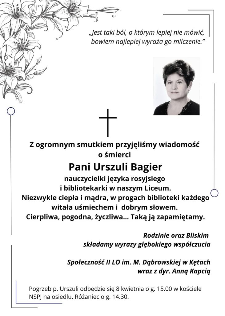 Pogrzeb p. Urszuli odbędzie się 8 kwietnia o g. 15.00 w kościele NSPJ na osiedlu. Różaniec o g. 14.30.