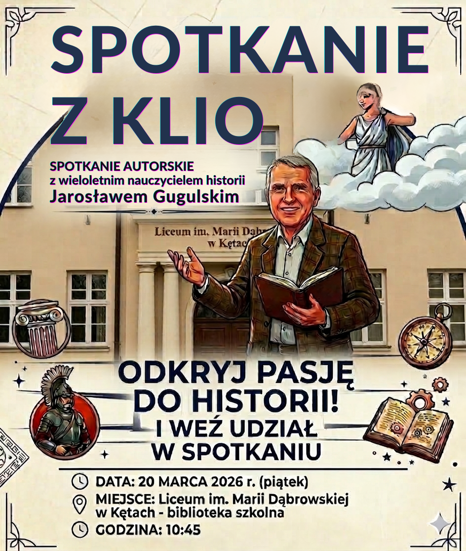 Serdecznie zapraszamy na spotkanie autorskie z panem Jarosławem Gugulskim, które odbędzie się w piątek 20 marca br. w szkolnej bibliotece o 10.45. Temat spotkania: Spotkanie z Klio.